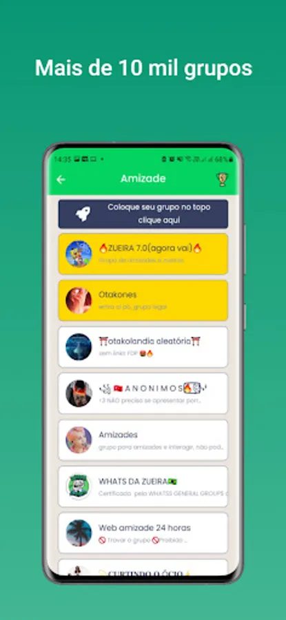 Here you can find the best zap groups, make friends, publicize your groups, get a new job or even a girlfriend through the more than 1000 group links available.
