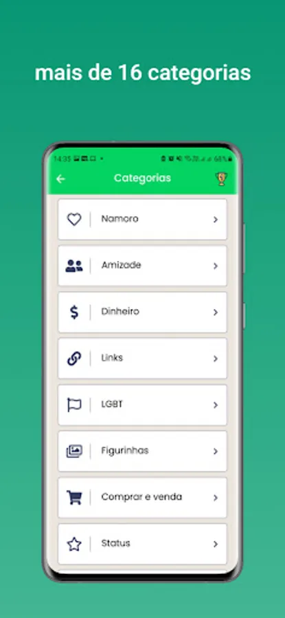 You can find groups of friendships, jobs, status, stickers and more ...