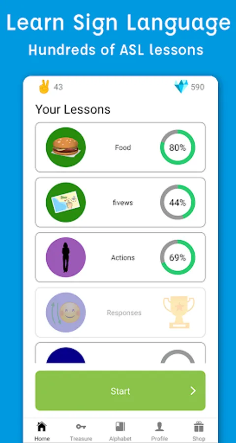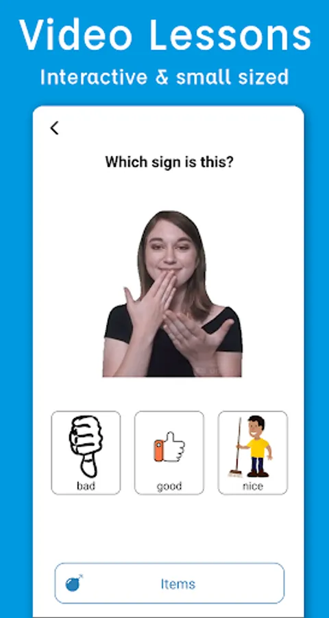 Pocket Sign offers hundreds of video sign language ASL lessons packed in small sized lessons. Learn sign language effectively with our interactive questions: