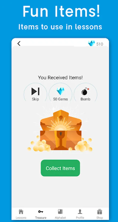 - Use items to make the learning easier and fun