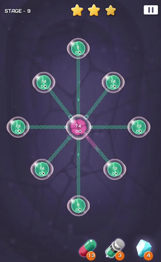 Defend your cells from enemy attacks then counterattack to take control of enemies' cells.
