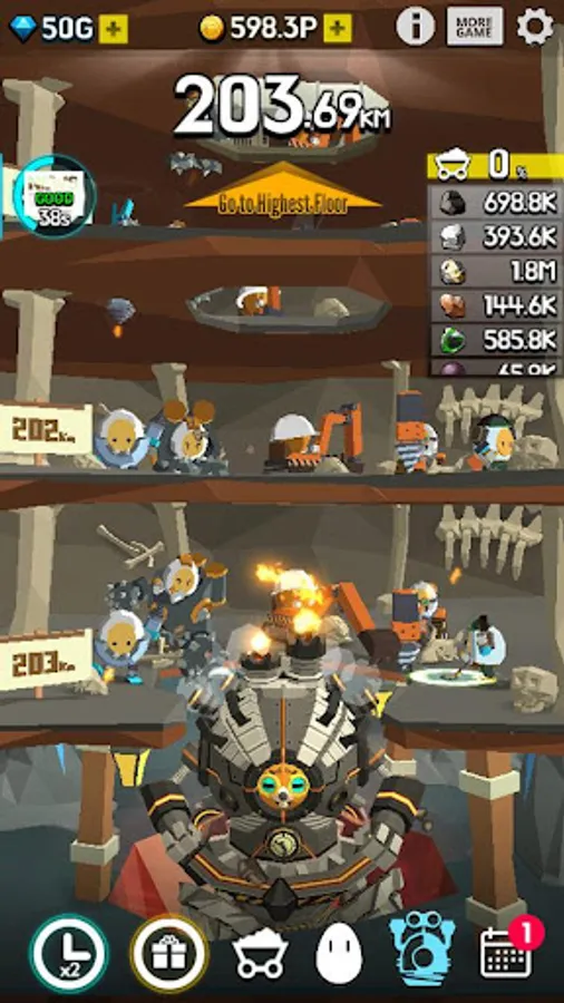 Mine diverse gems and minerals with a powerful excavator and cute miners.