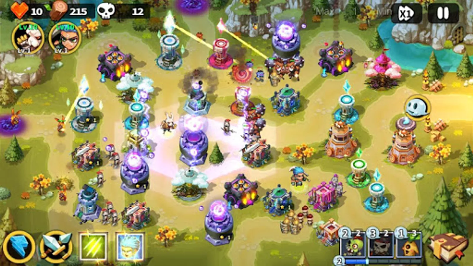 - Defense tower's effective range, attack, cost, and speed can be custom upgraded
