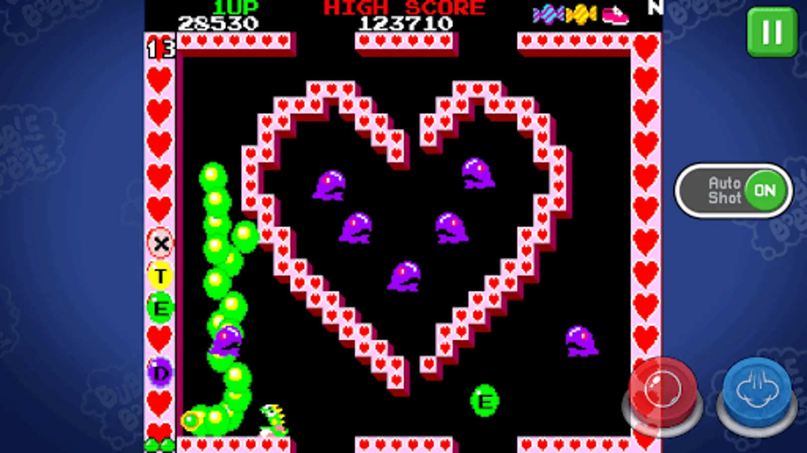 Classic Arcade Game with the main character ‘Bubblun’ to capture enemies with bubble and defeat it.
