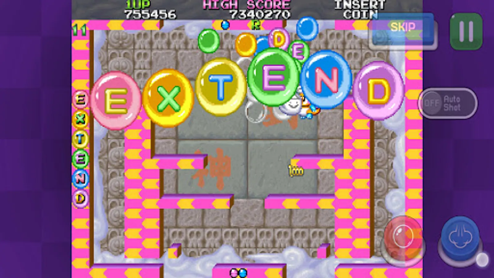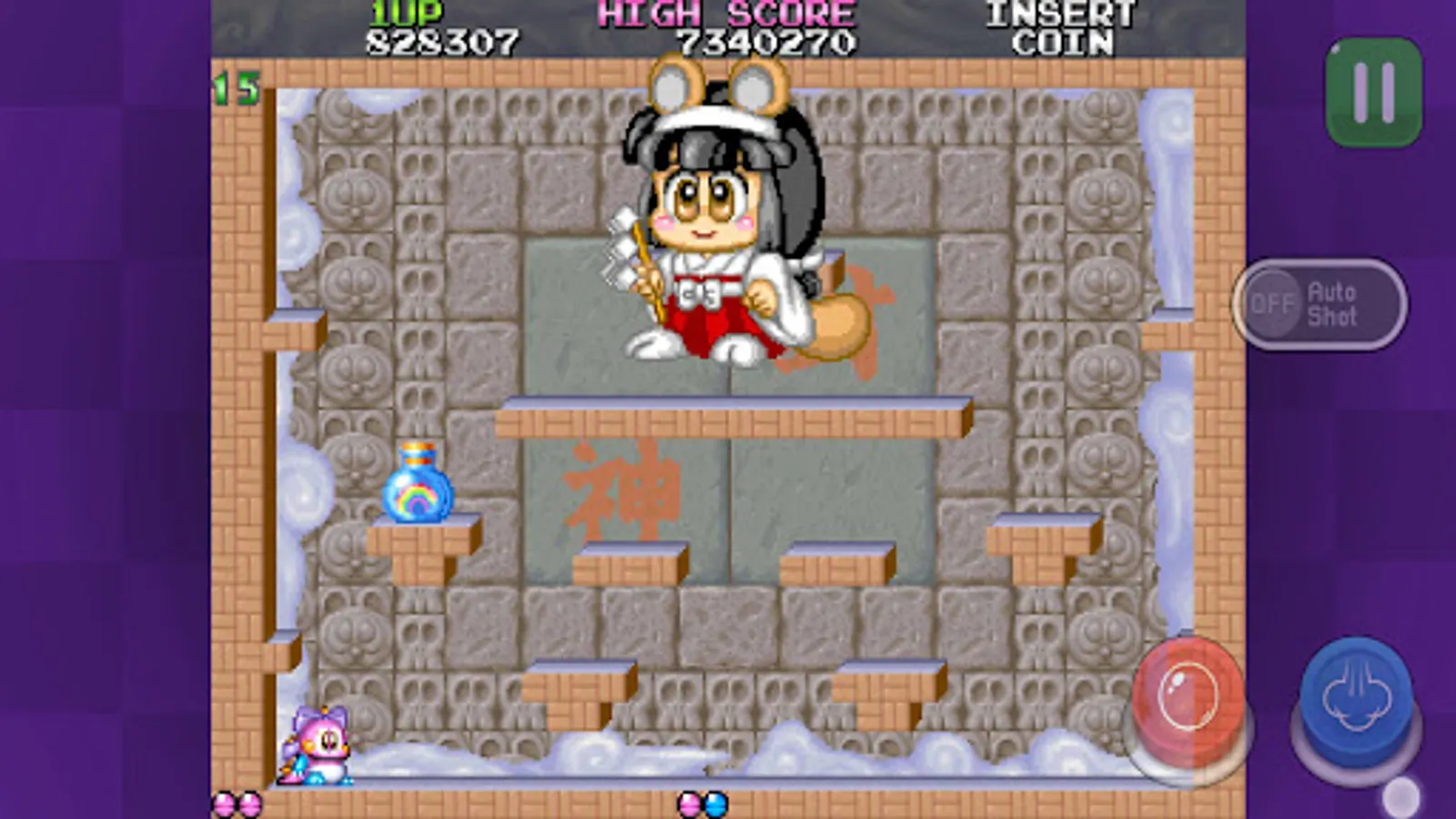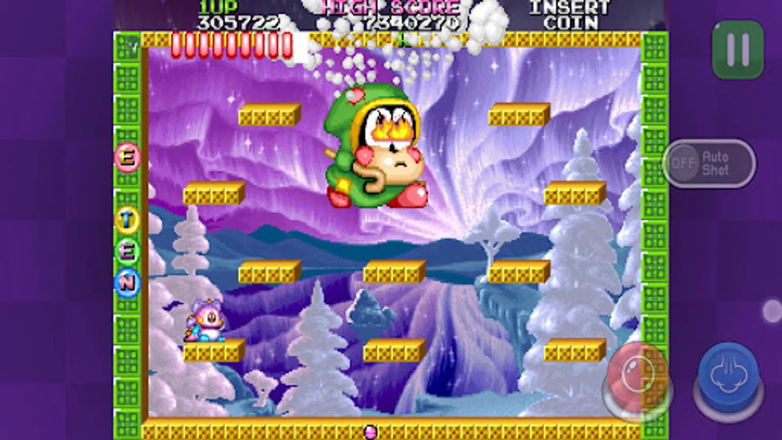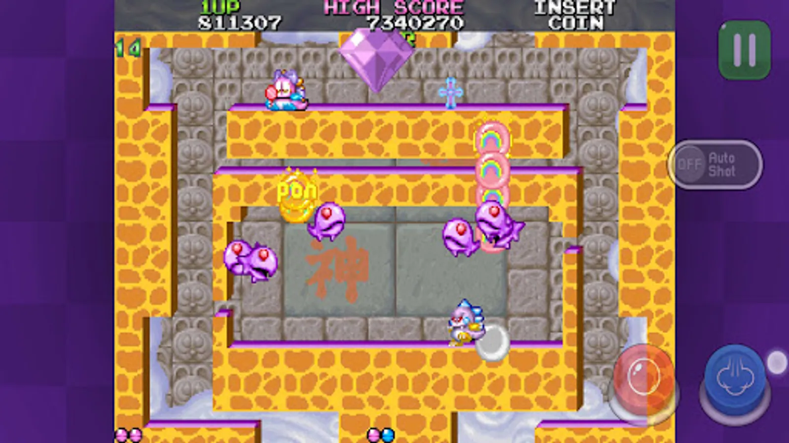 It is an action game that selecting one of 4 character with different ability by shooting bubbles to trap the enemy, then pop it with horns or scales to defeat them.
