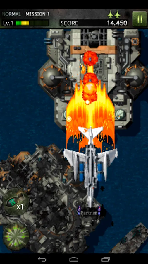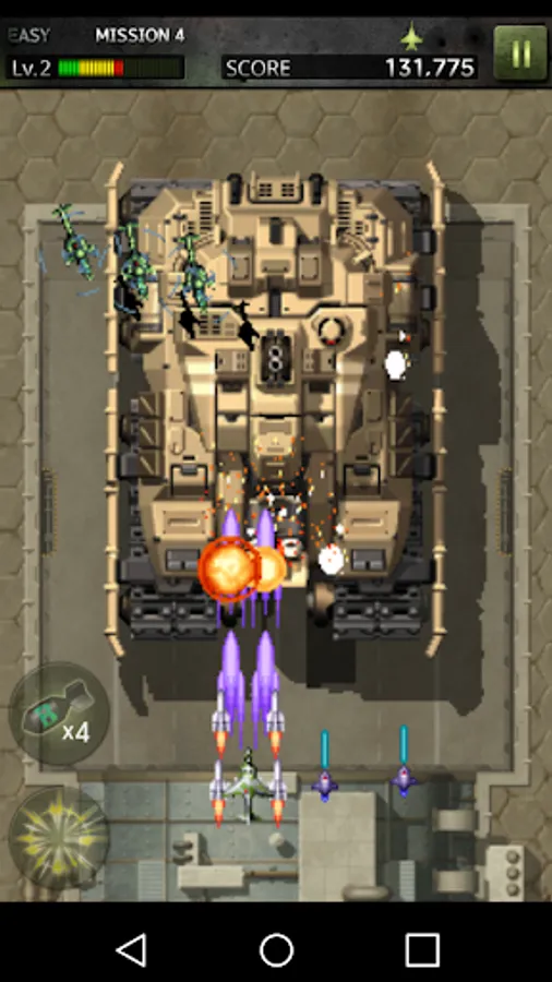Bomb button touch: Fire a bomb to block enemy fire for some time.