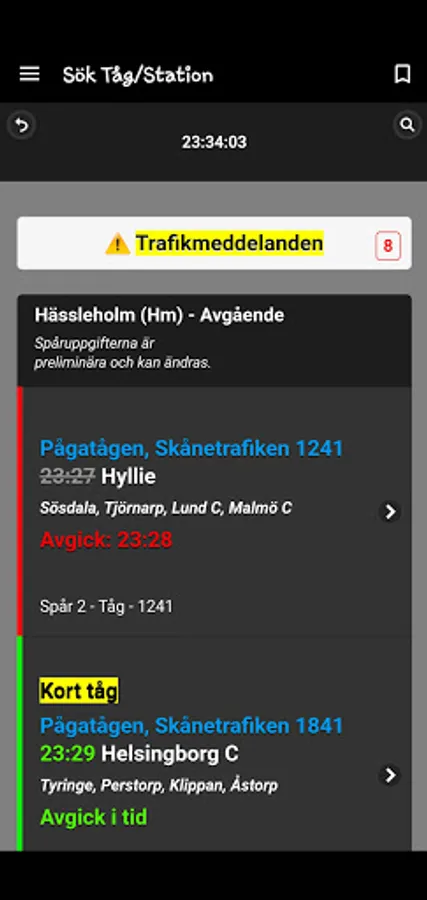 Search Station - Search for information about departing / arriving trains and receive station messages.