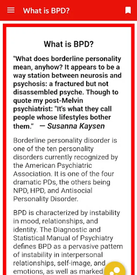 This app will explore all aspects of Borderline personality disorder beginning in the 1930s when it was first introduced by psychologist Adolf Stern. Stern described patients with characteristics that did not fit neatly into existing diagnostic categories, and his work laid the foundation for understanding what would later be recognized as BPD.