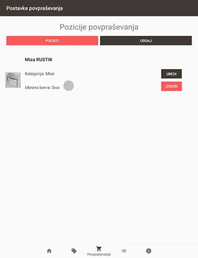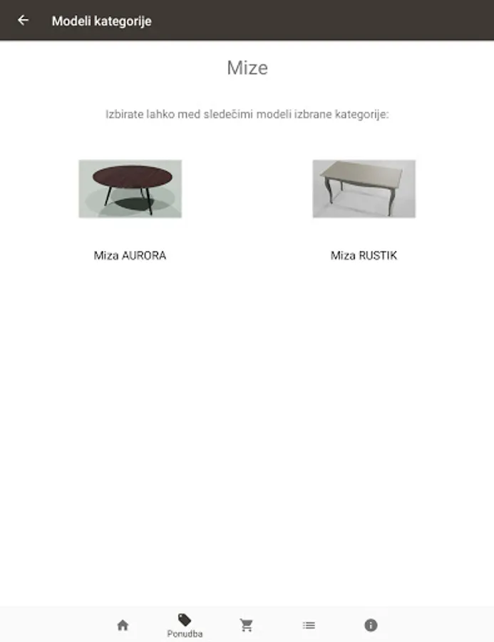 The mobile application is intended for everyone who wants to furnish their home. You can choose from the offered product categories and check the models of the selected category and place them in your home space with the help of augmented reality and check whether the selected product suits you or not. You can add the product to your inquiry and also submit it, by entering your contact details via a simple form and the inquiry is sent both to the company and to your e-mail address.