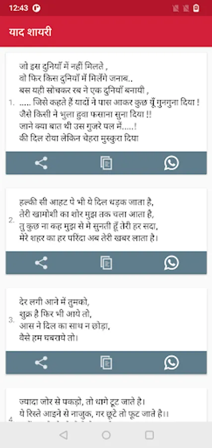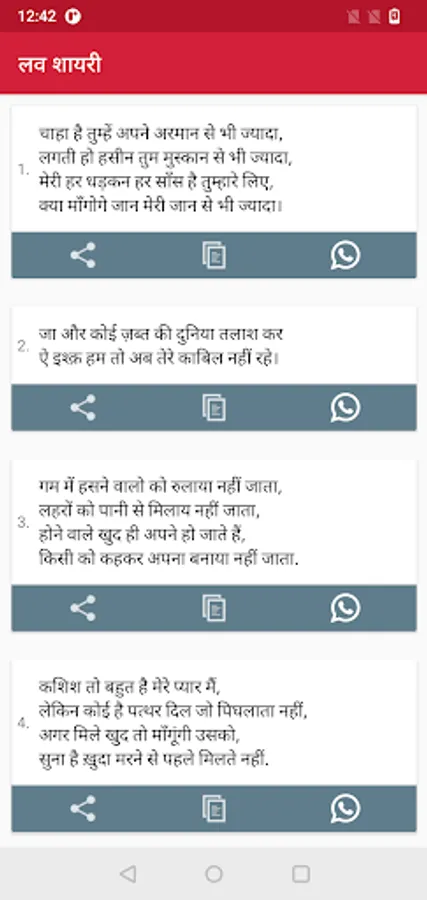 If you are in love then get ready to relive the nostalgia with Love Shayaris. Install the Love shayari widget to discover the most beautiful love shayaris that will fill your life with romance and give expression to the feelings in your heart. Make your sweetheart’s day special by setting the mood – read, recite and share love shayaris. Carry this romantic collection of verses in your mobile and send a beautiful love shayari whenever, wherever. Make your emotions sound even more special with our words and fill your life with the magic of love.