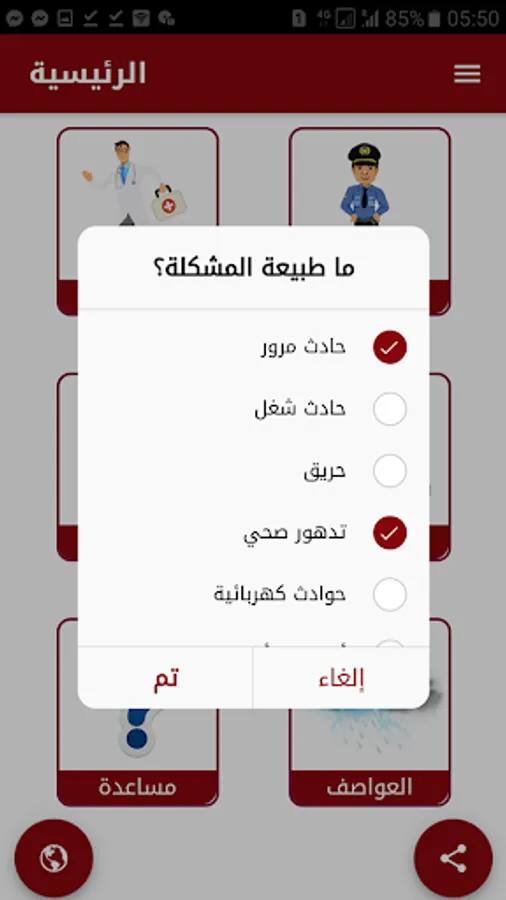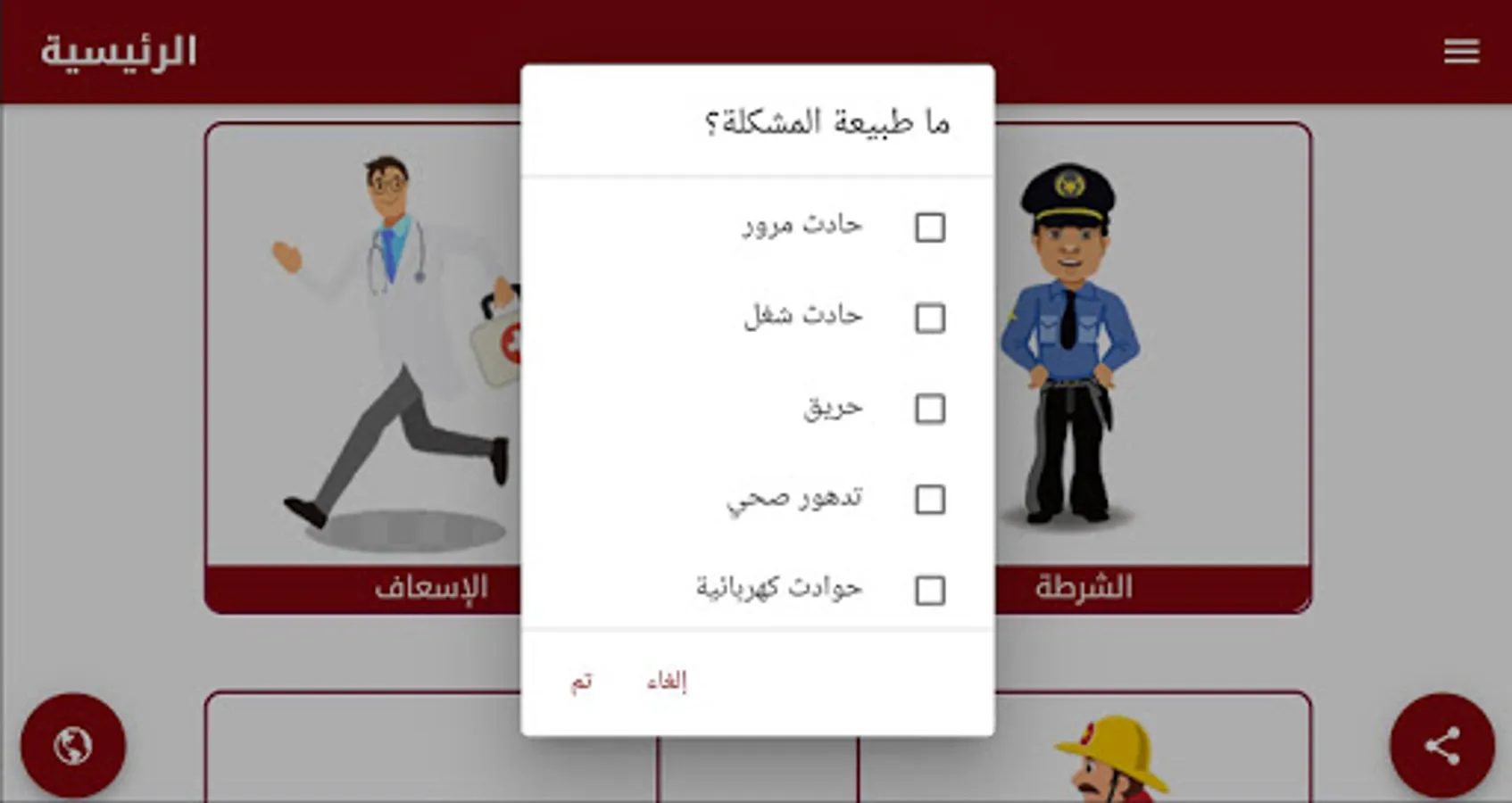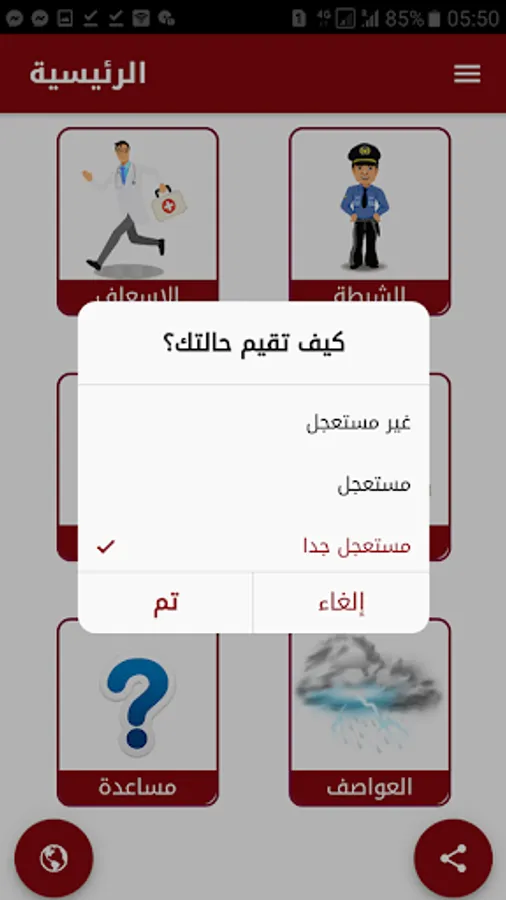 This application helps people with special needs to request help from the competent authorities such as the police or ambulance in emergency cases by sending a distress message attached to the user's location and the nature of his condition in a simple way.