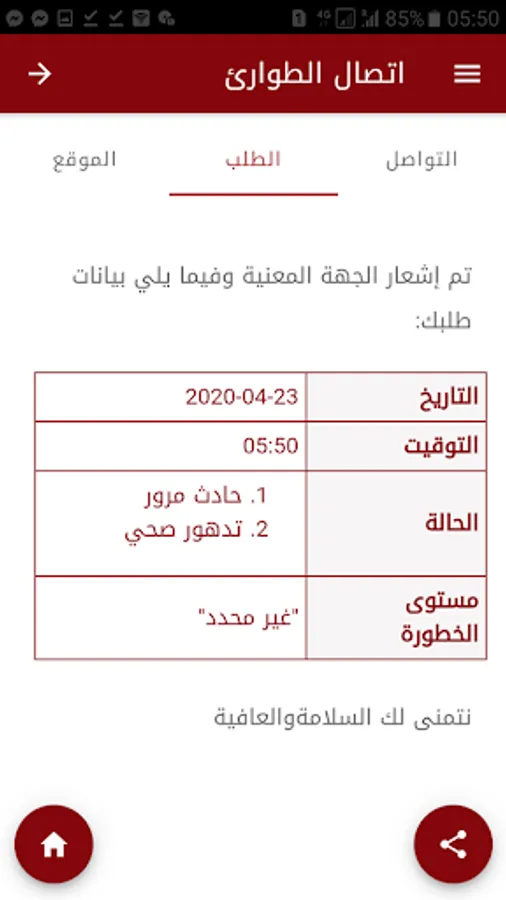 This application was developed to satisfy the need of people with special needs in communicating with emergency agencies in a simple way and without writing anything as the application sends a help request attached to the user's website with the nature of the case included.