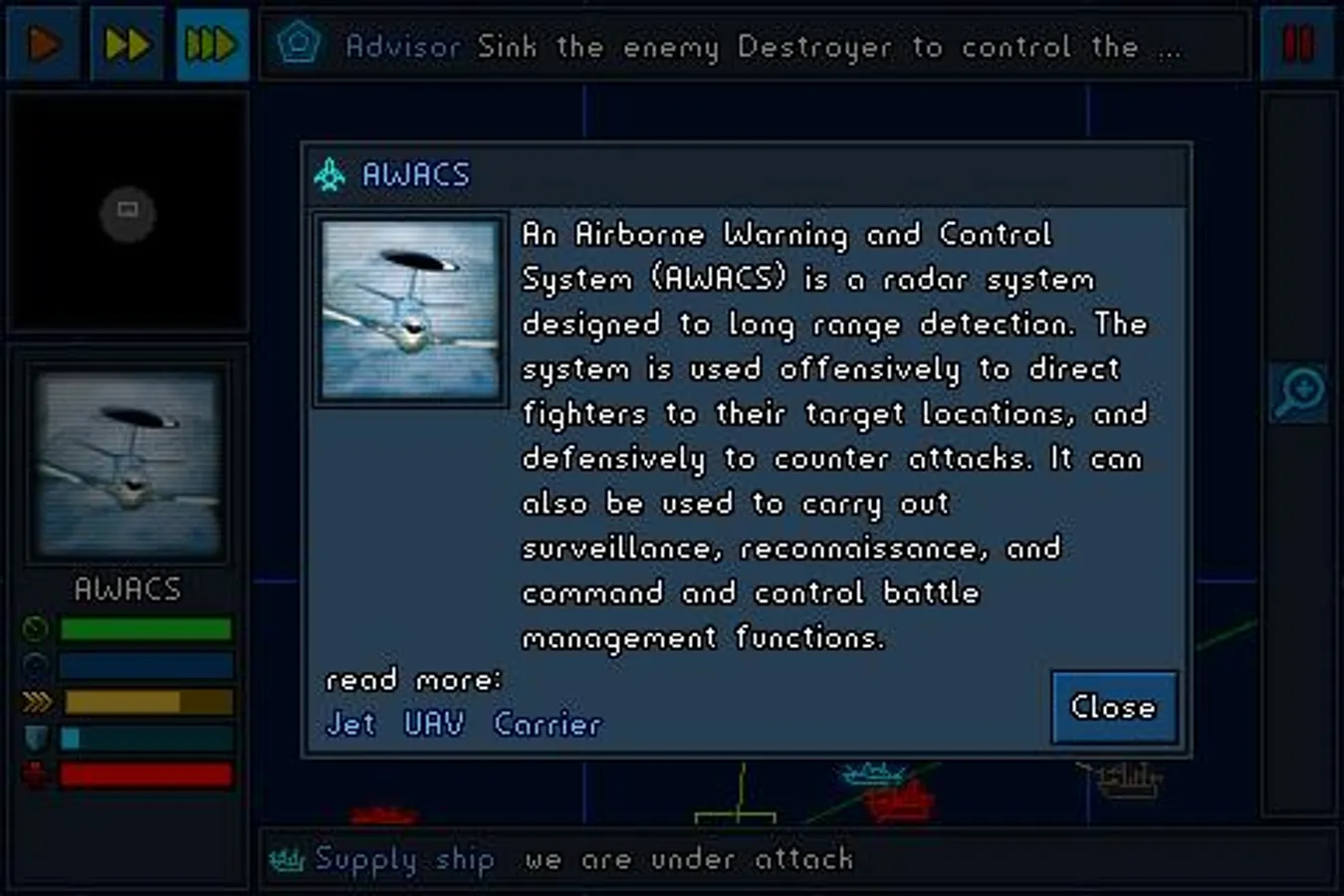 NavyStrat is a real time strategy wargame which is simulating the considerations and circumstances of operational warfare focusing on complex naval battlefield tactics and reconnaissance.