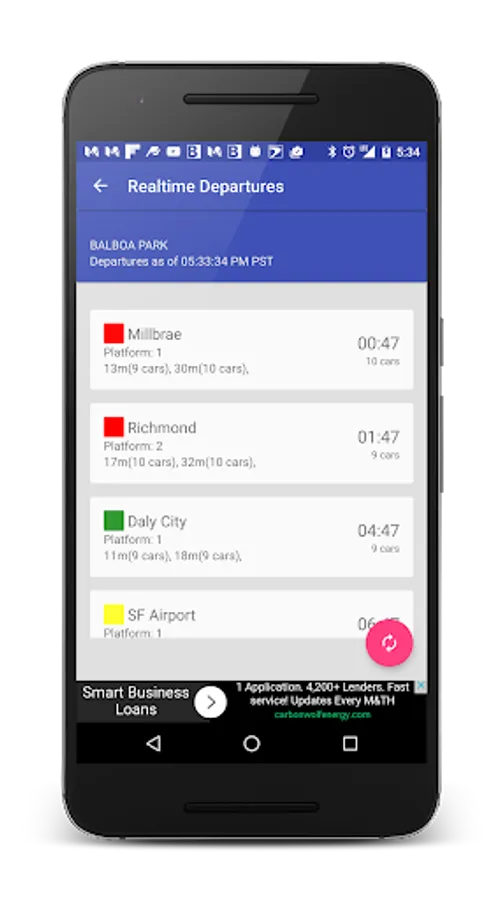 2. Real time departures with ETA