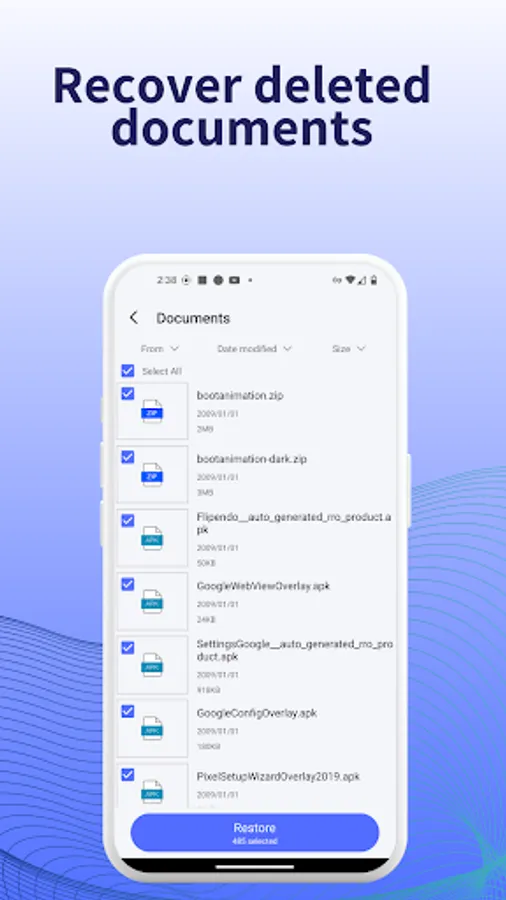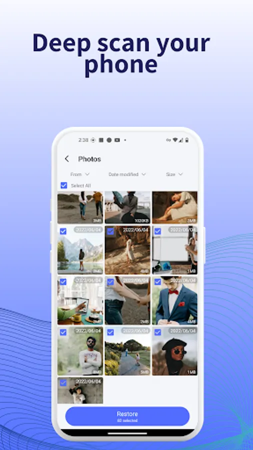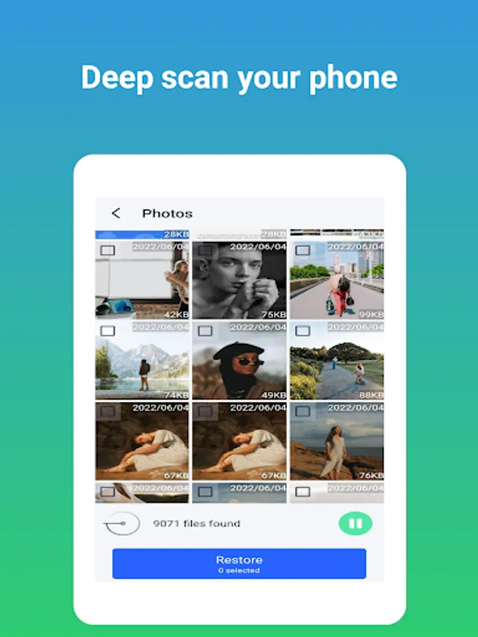 File Recovery: Deep scan your phone to find deleted files and recover them.