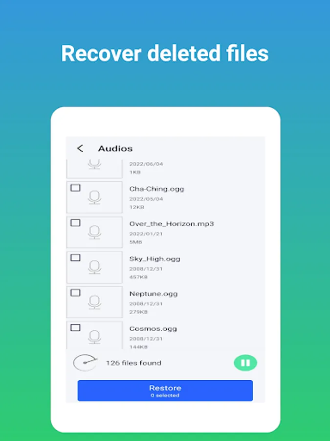 Audio Recovery: Recover music or recordings you deleted by mistake.