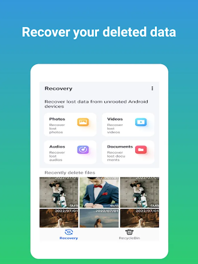 Whenever you delete the above types of data, you can use this app to recover them immediately, no root required