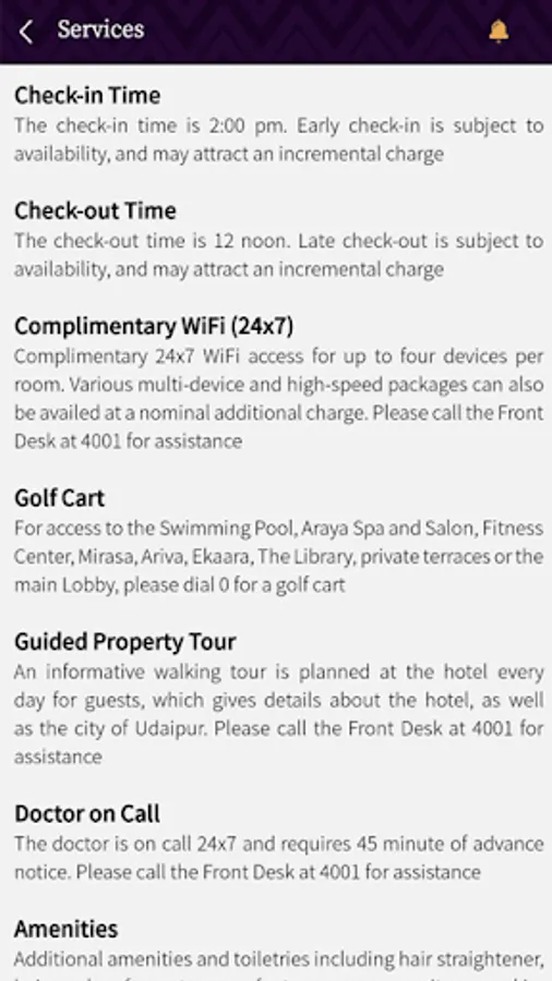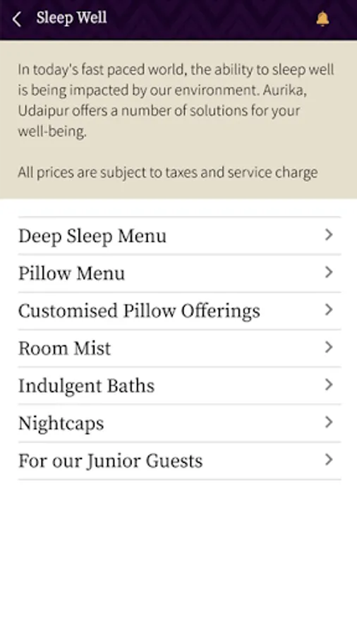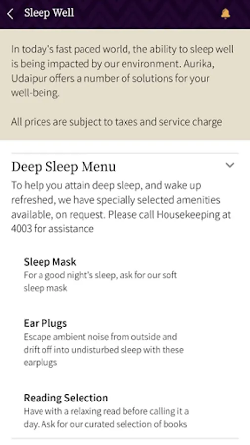 Browse through our extensive food & beverage and spa & salon menus, experience our sleep well options, get information on the recreational facilities, and explore the exclusive experiences and sightseeing options.