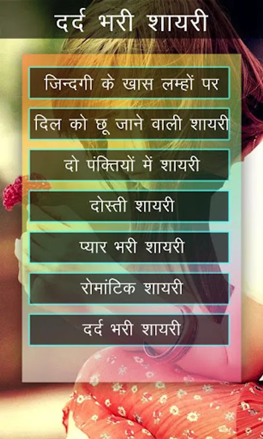 This “Latest Hindi Shayari” app has many different categories shayari in Hindi.