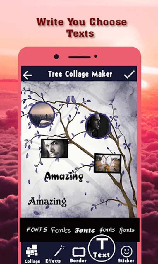 With Tree Photo Collage Maker you can combine ordinary photos into fabulous & amazing photo collages. You can decorate your collage by fantastic 3D tree effect and frames, adding cool text with colourful fonts & stickers, and then you can share your work to All Social Media App.