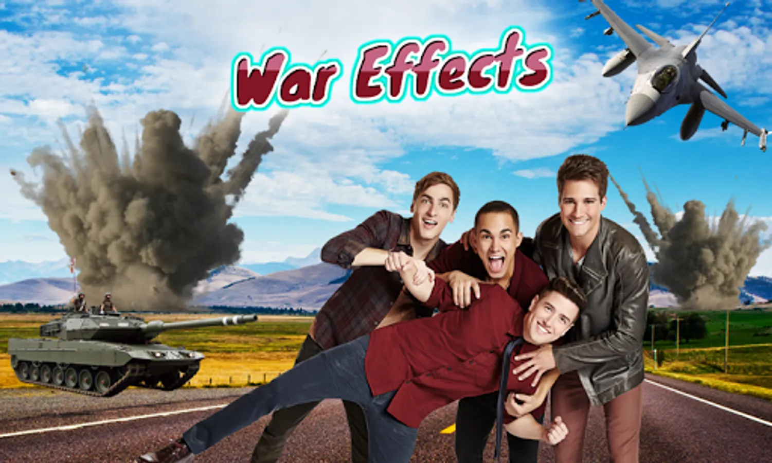 Loc War Grab action to your photos with “War Effects”. Feel like you are standing between a War zone. Give photos a whole new experience. Apply guns, bombs, military cap, tanks, jeep and more to photos.