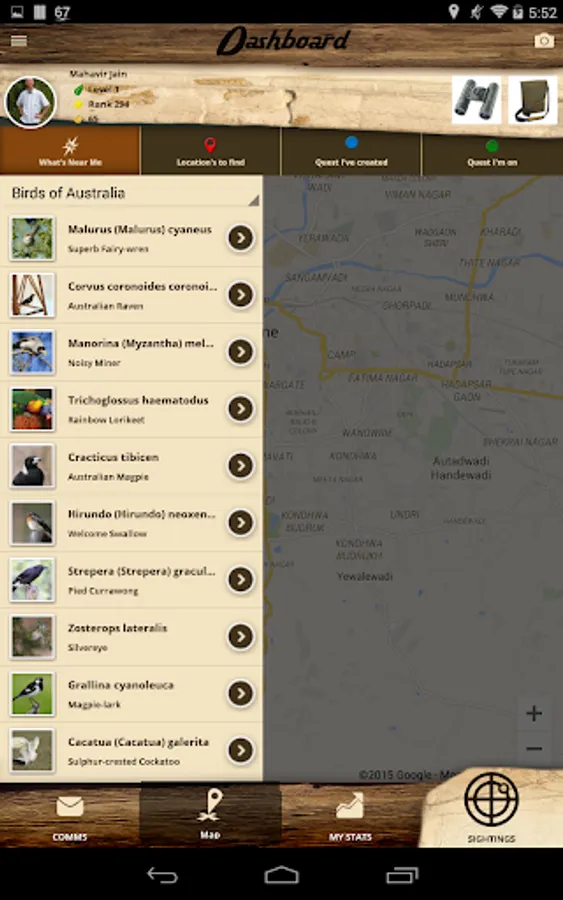 The game includes all species in your country, using national and global databases.