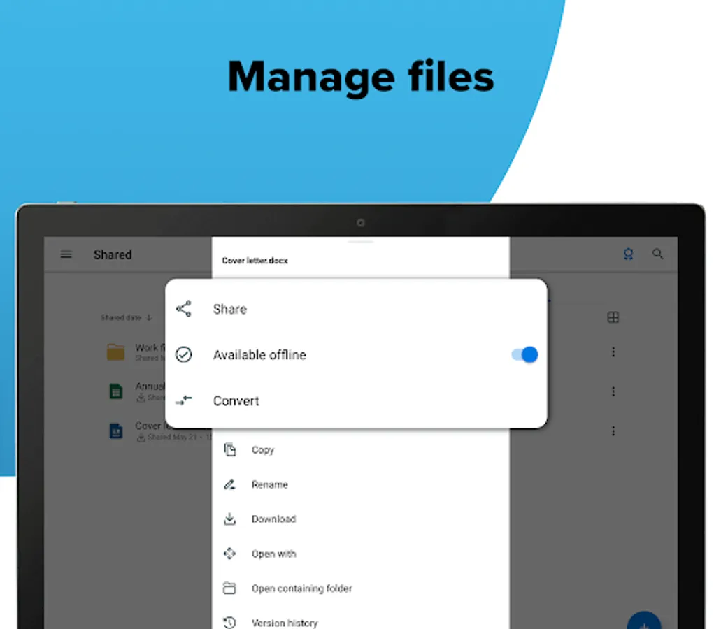 • Mark a drive file as available ‘Offline’ for use without the need to sync or have internet.
