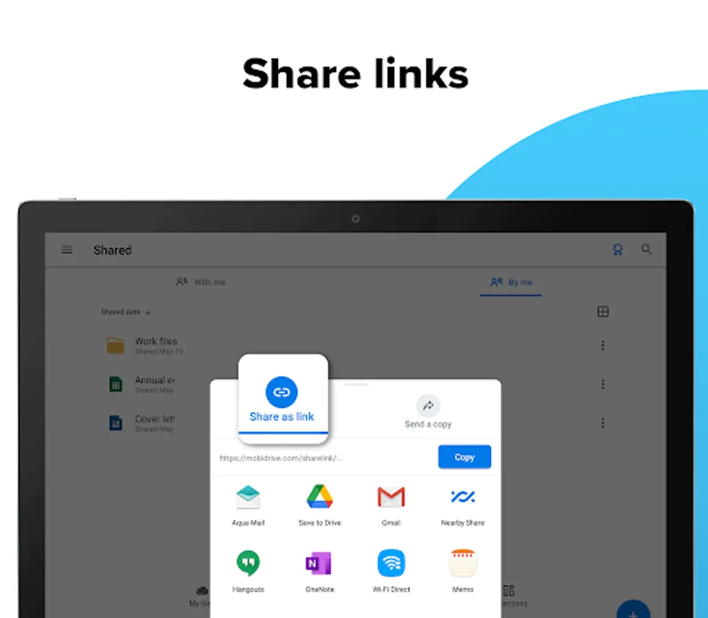• MobiDrive’s content transfer is straightforward and fast. Secure and sync files and folders to your drive in seconds.