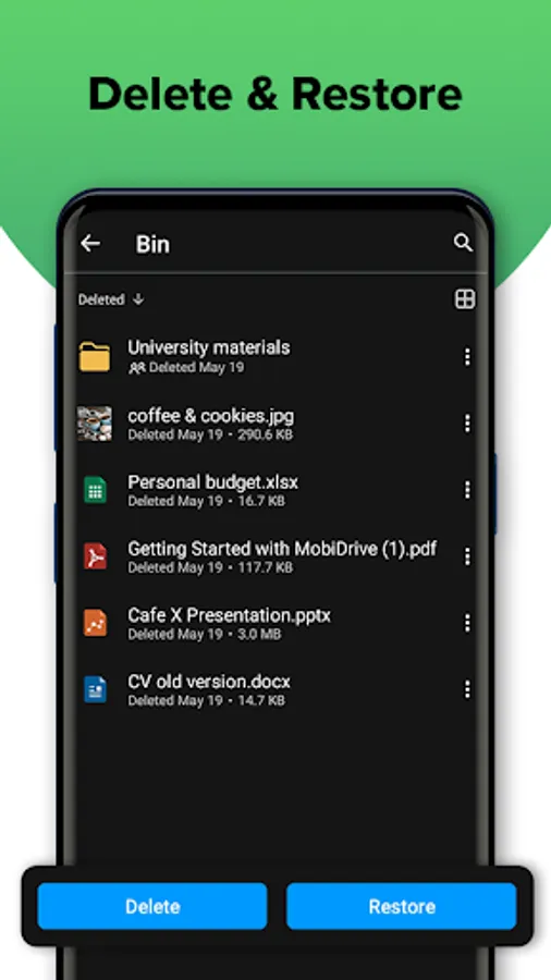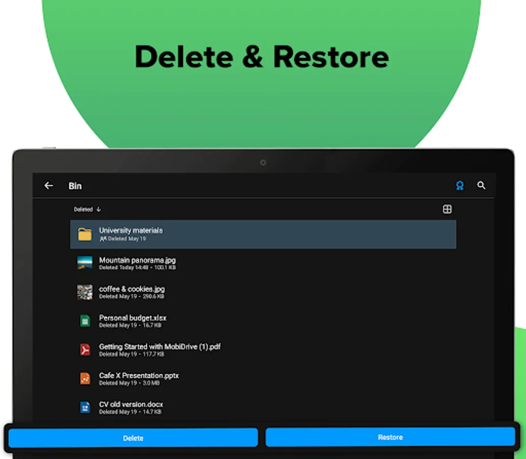 • Accidentally delete a file? Restore it from the Bin section, housing files you’ve deleted from your drive.
