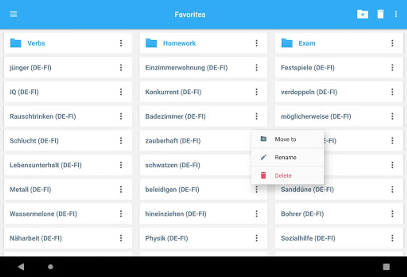 • Designed to give you the freedom to structure your studies the way you see fit the 'Favorites' option allows you to create custom folders with lists of words from the vast library of entries