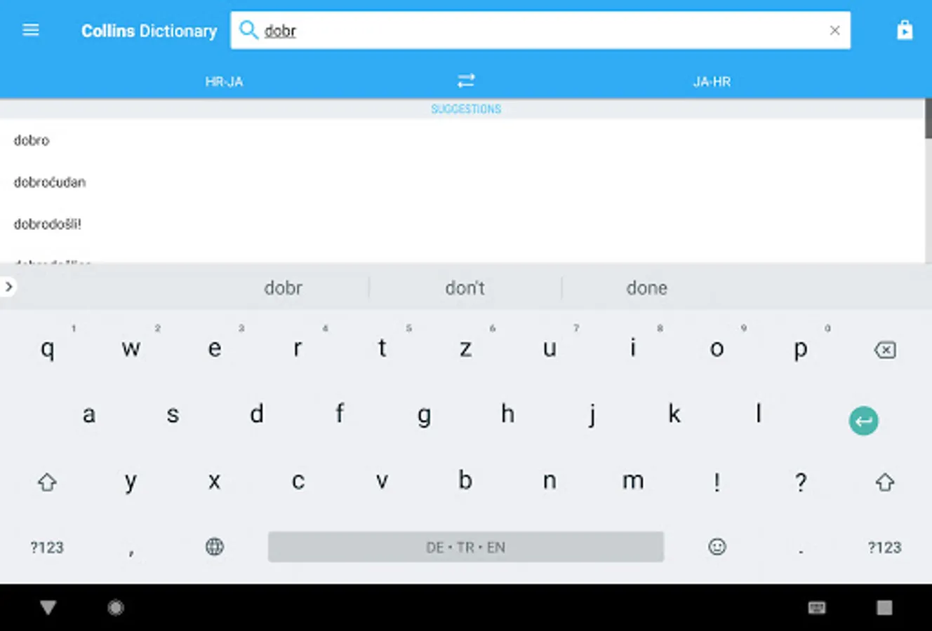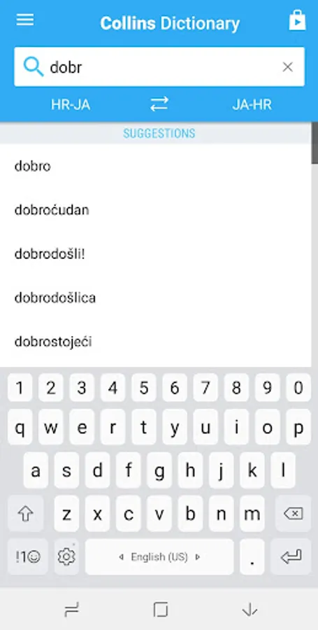 • Search autocomplete helps find words quickly by displaying predictions as you type