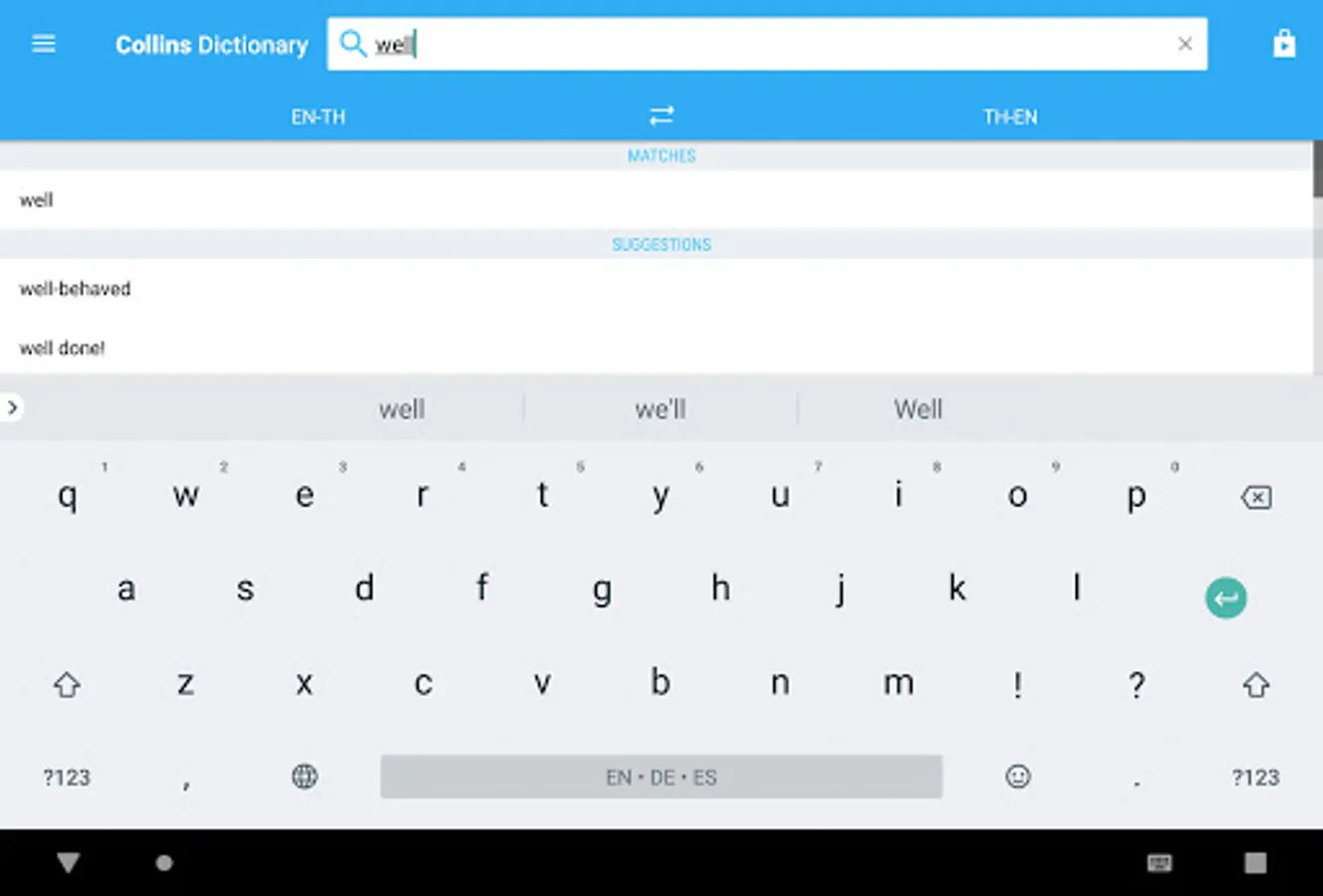 • Search autocomplete helps find words quickly by displaying predictions as you type