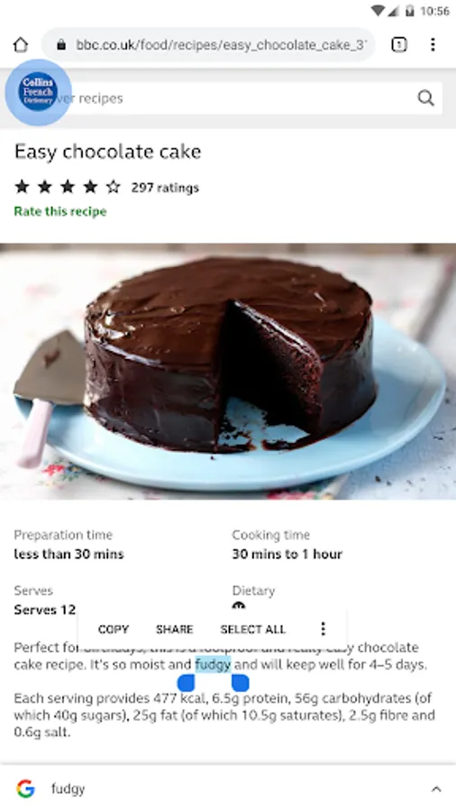 • Camera search looks up words in the camera viewfinder and displays results in seconds.