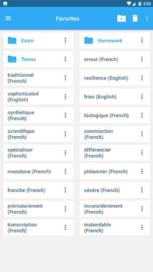 • Designed to give you the freedom to structure your studies the way you see fit the 'Favorites' option allows you to create custom folders with lists of words from the vast library of entries.