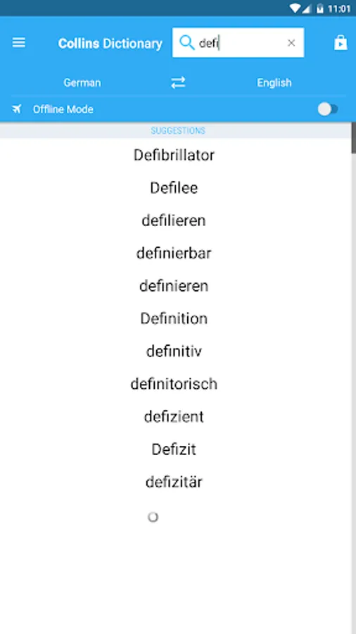• Search autocomplete helps find words quickly by displaying predictions as you type
