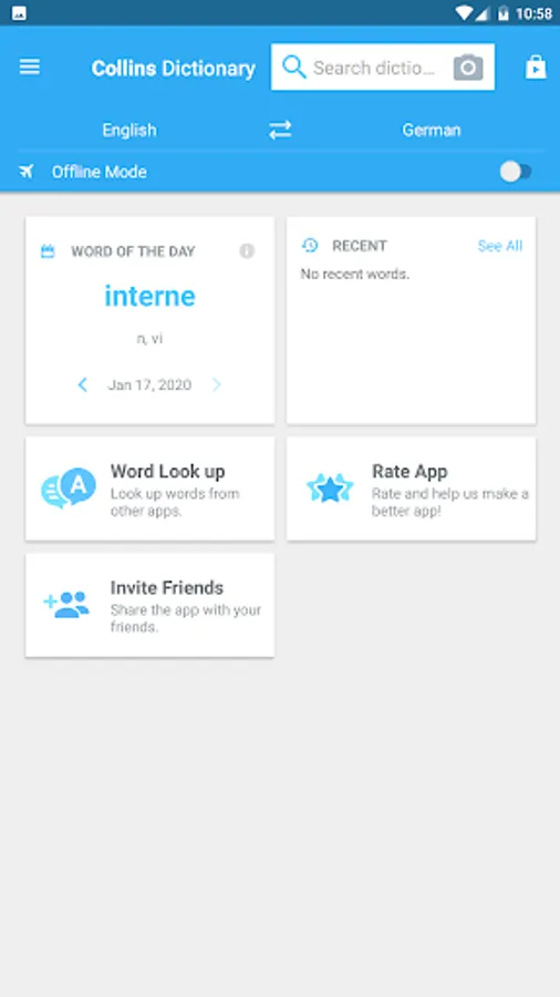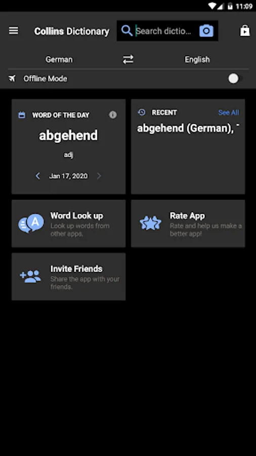 • NEW! Translate words in any other Android app with the Tap to Translate feature, and do it in style with any of the four colorful new themes.