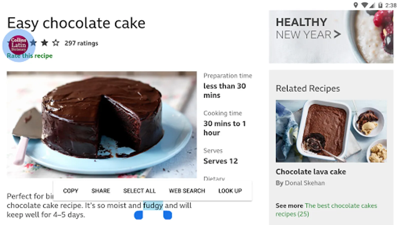 • Search autocomplete helps find words quickly by displaying predictions as you type