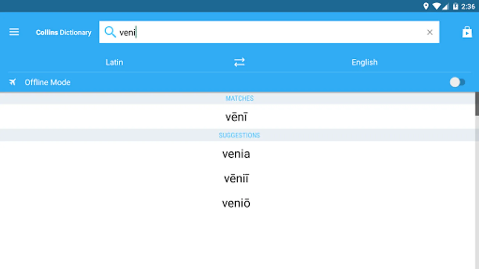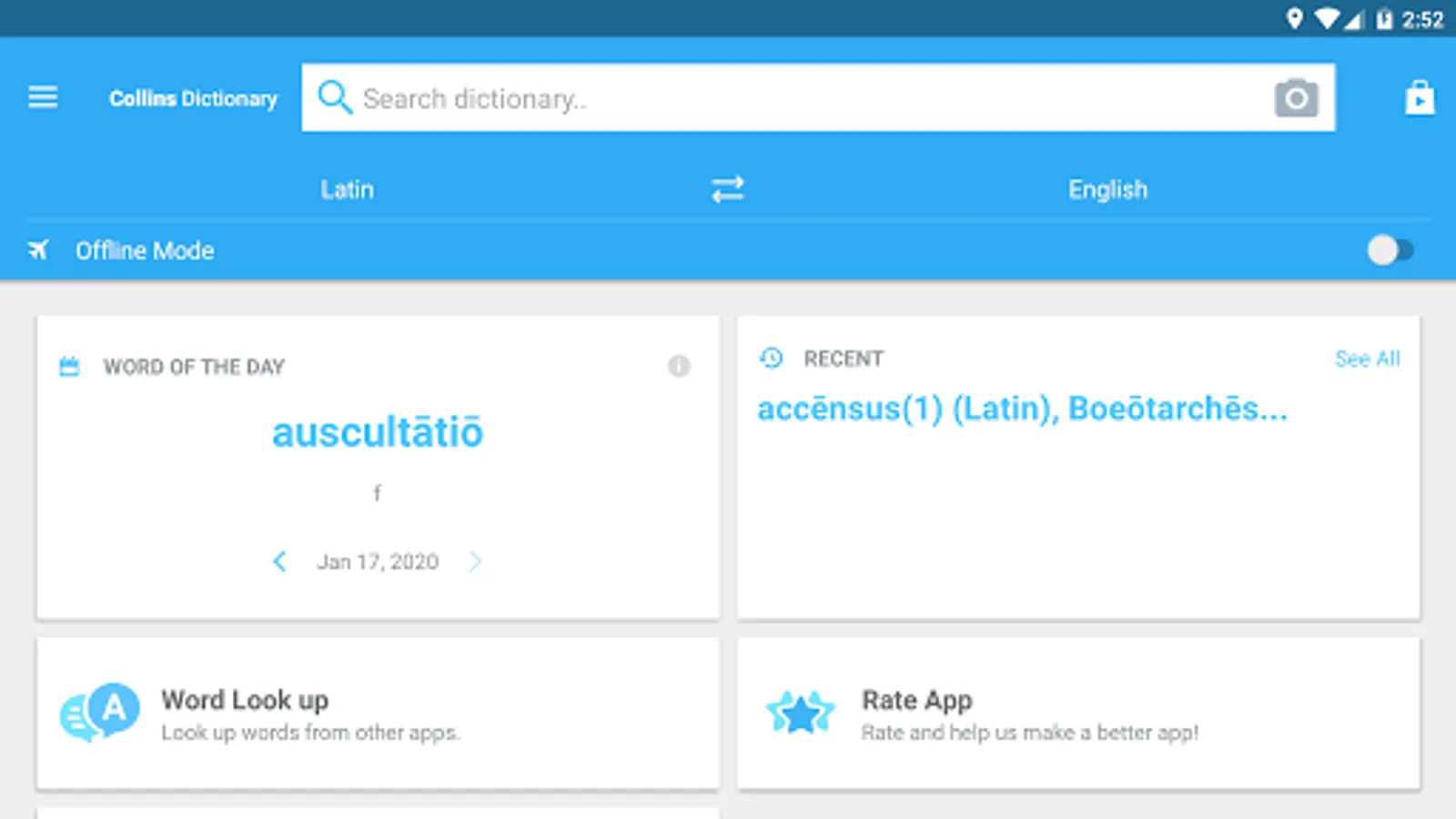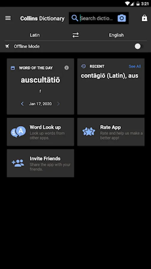 • Offline mode - look up words without an internet connection