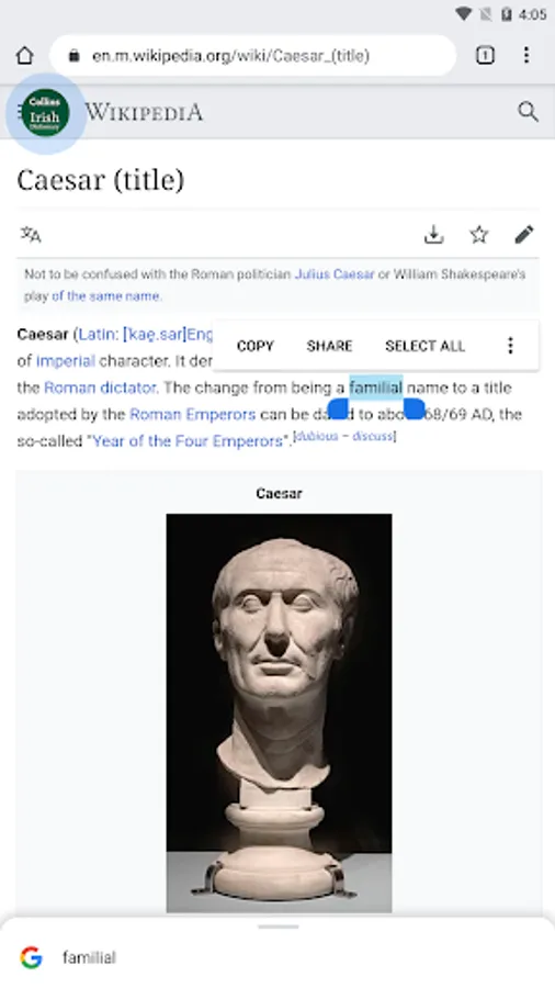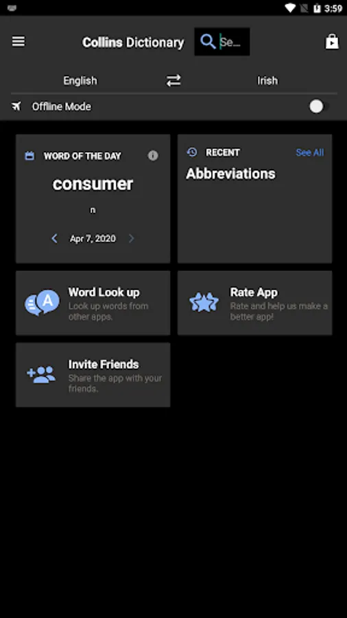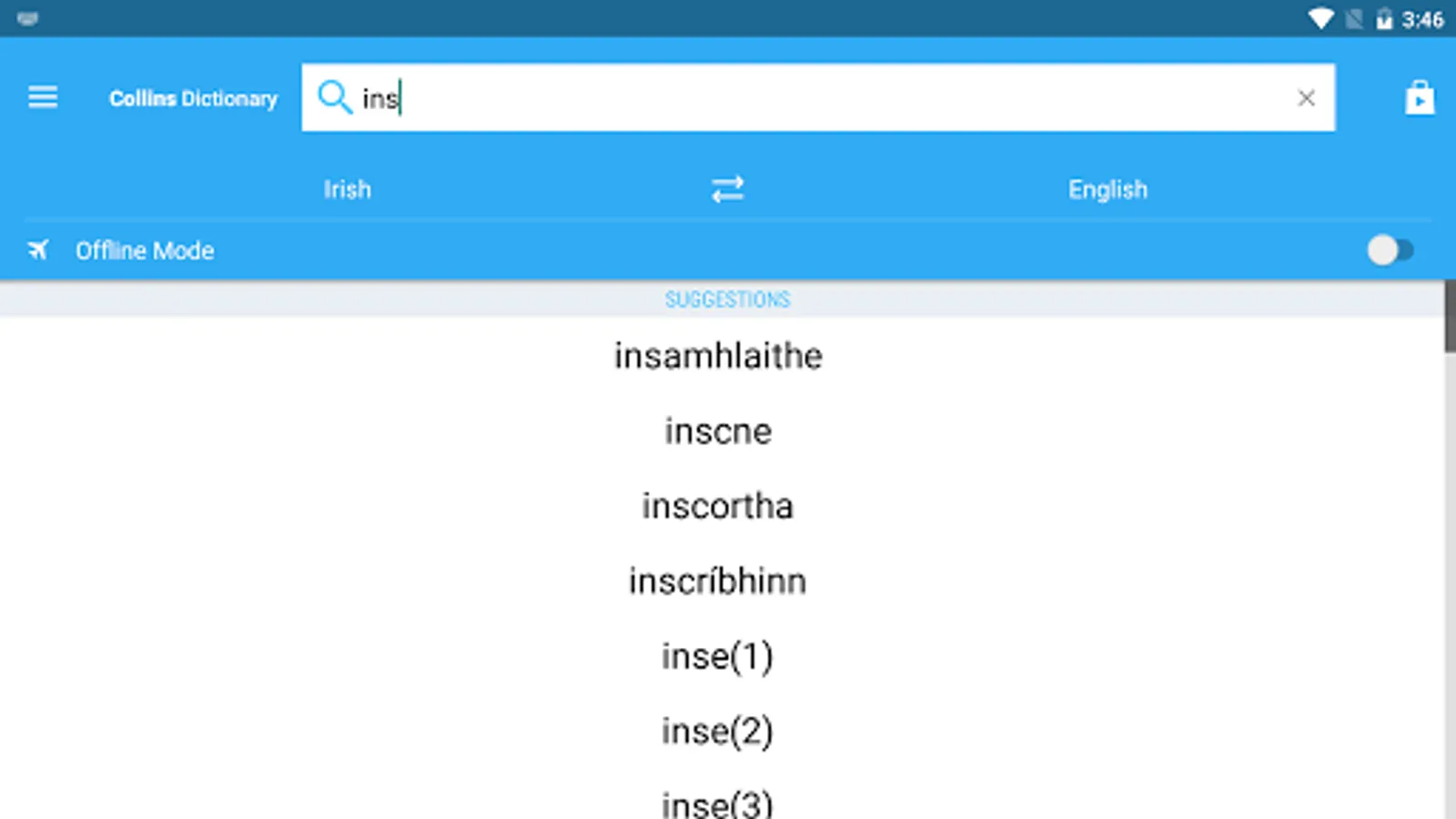• Search autocomplete helps find words quickly by displaying predictions as you type
