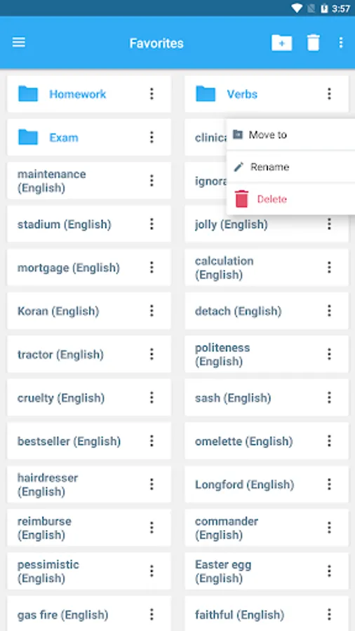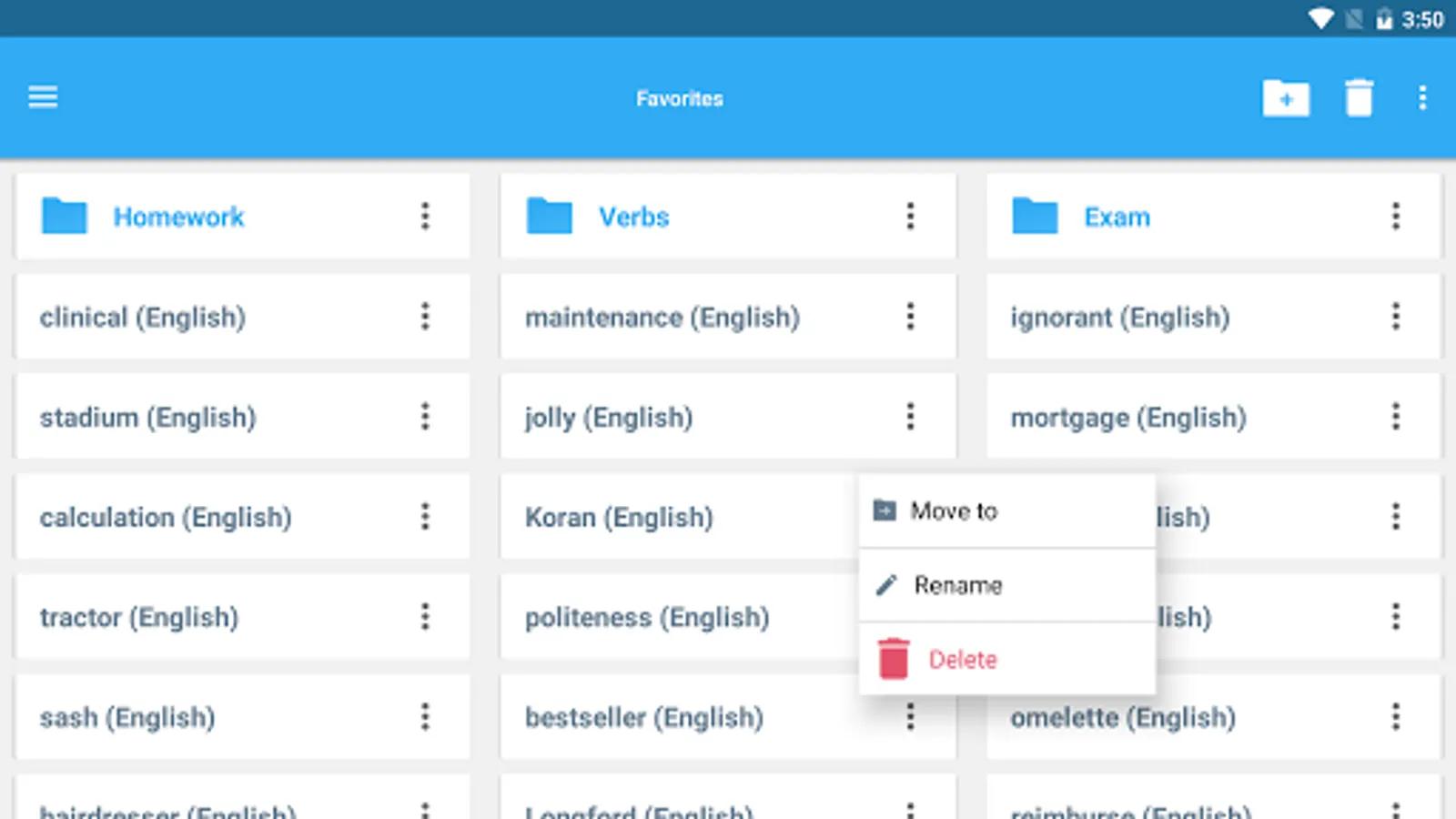 • ‘Favorites’ feature to create custom folders with lists of words from the extensive library