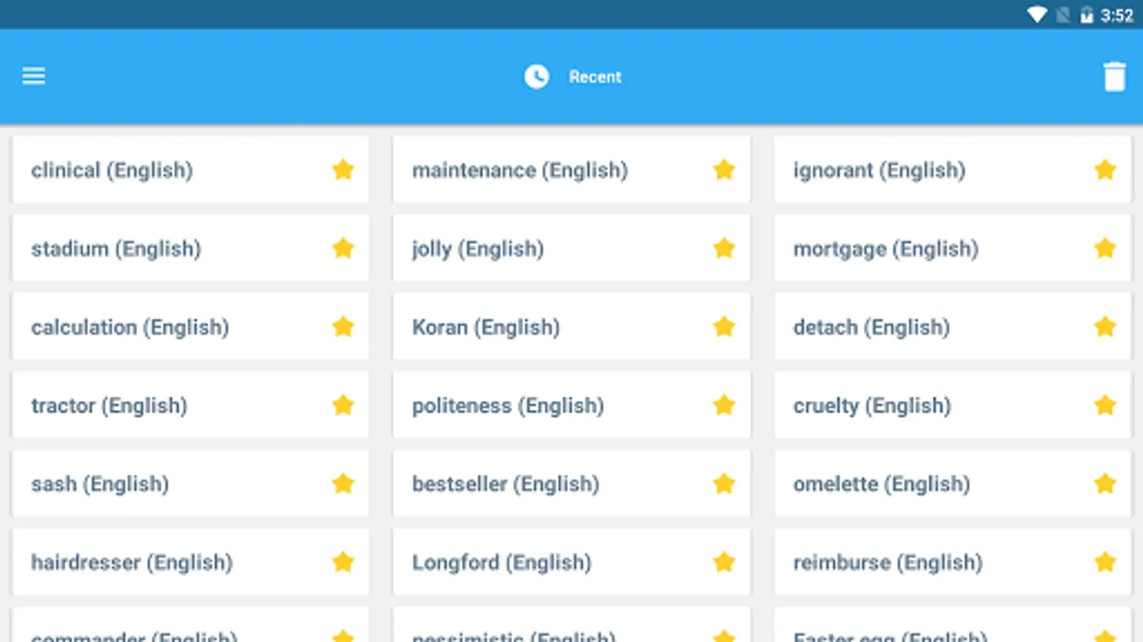 • ‘Recent’ list to easily review looked-up words