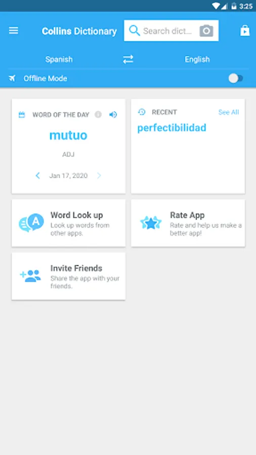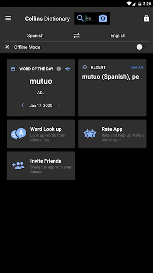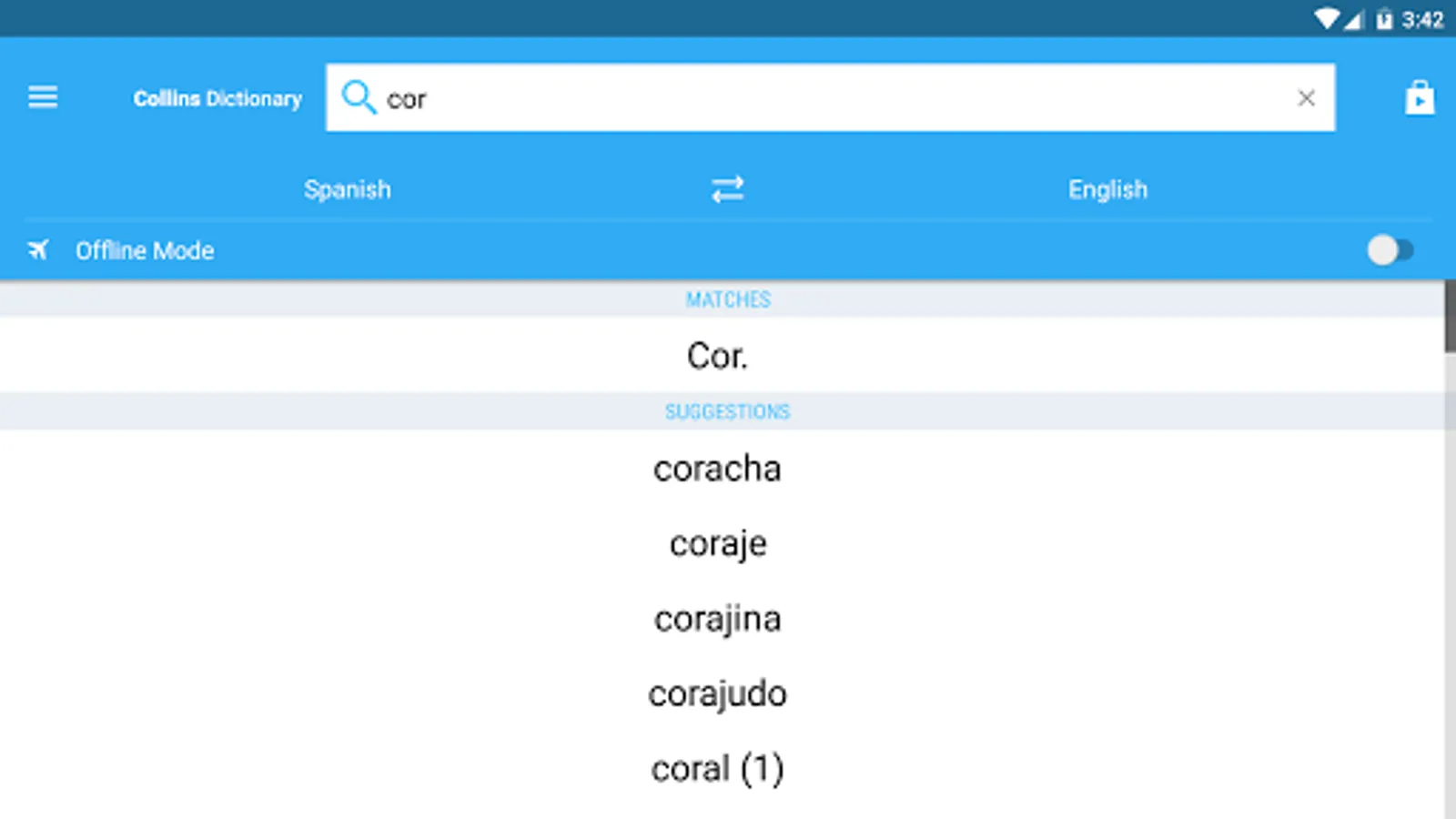 • Search autocomplete helps find words quickly by displaying predictions as you type