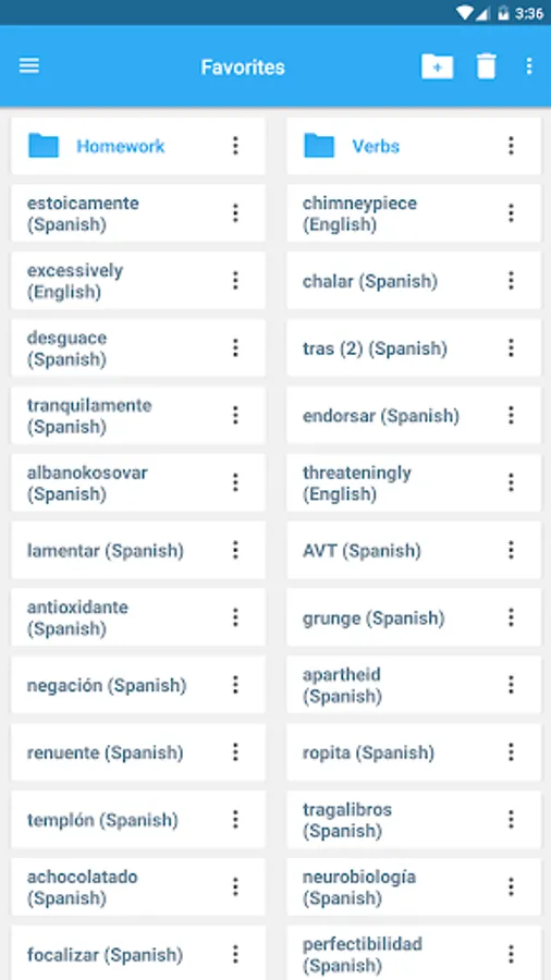 • ‘Favorites’ feature to create custom folders with lists of words from the extensive library