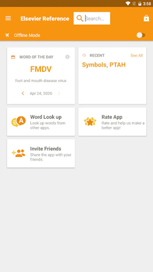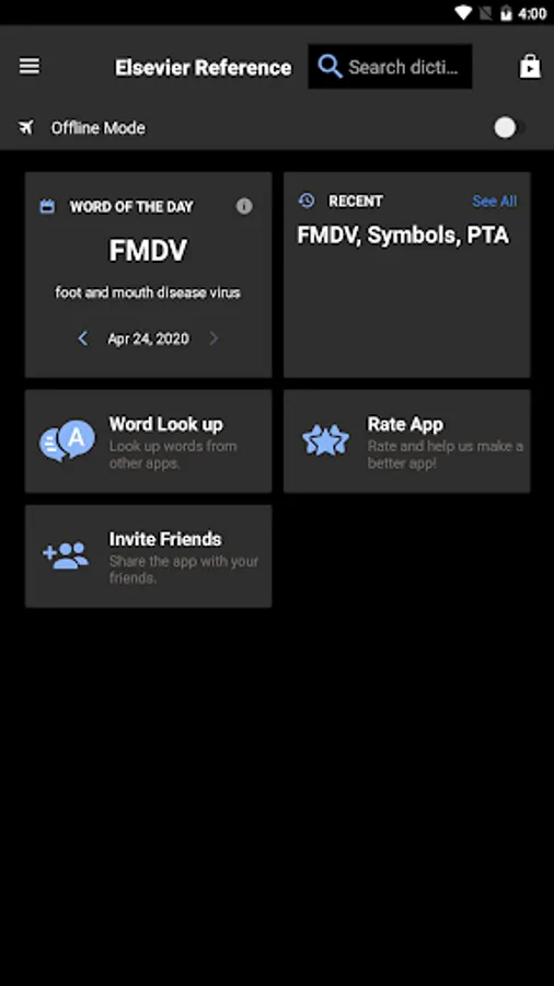 • Search autocomplete helps find words quickly by displaying predictions as you type