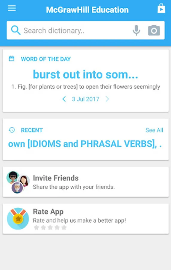 • ‘Word of the day’ section to expand your vocabulary daily