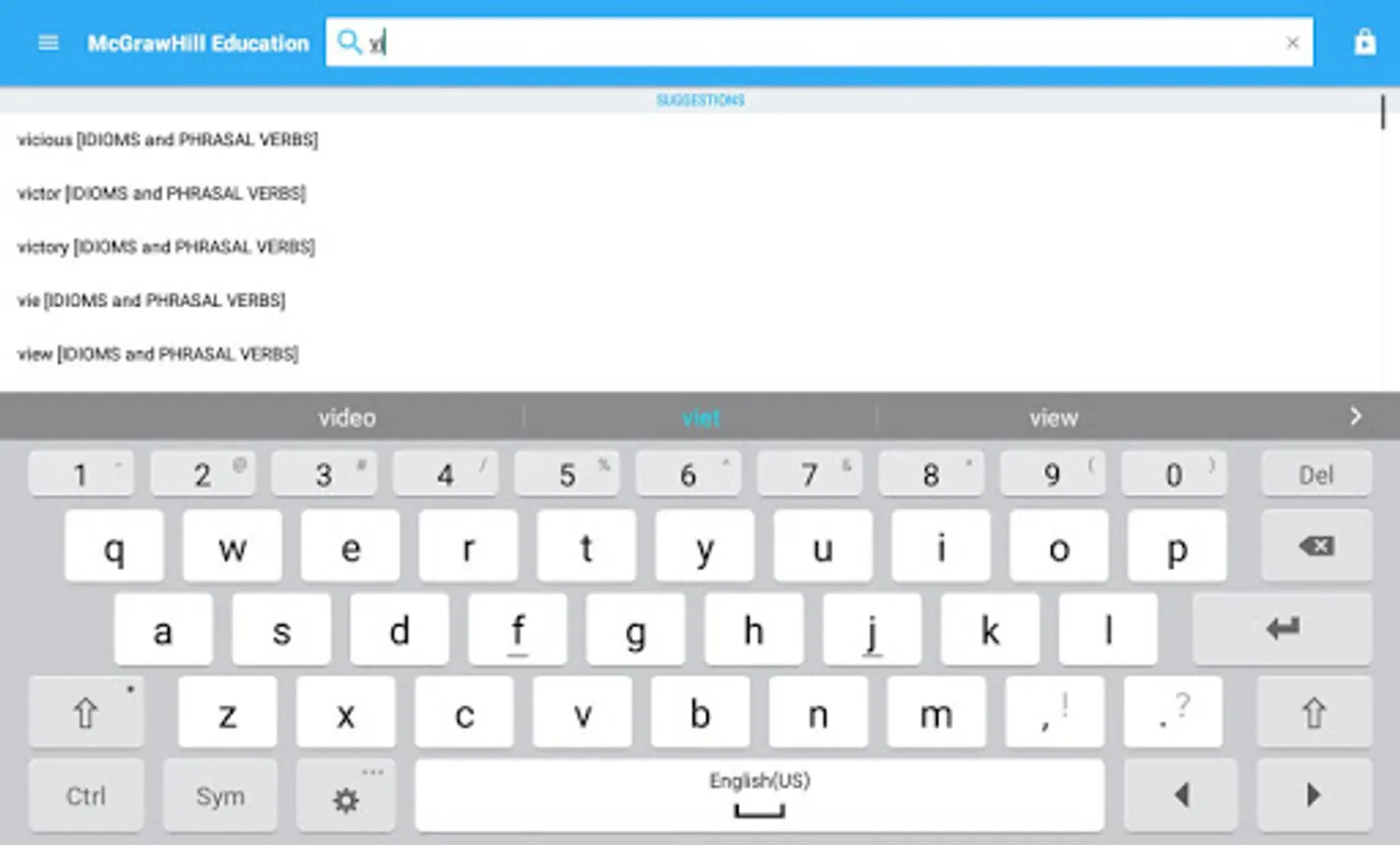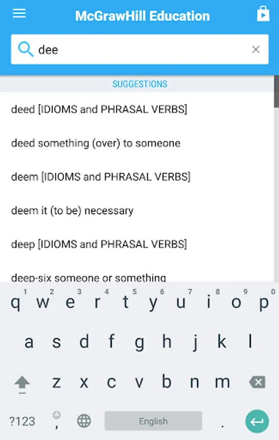 • Search autocomplete helps find words quickly by displaying predictions as you type