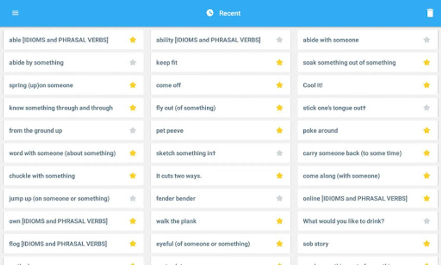 • ‘Recent’ list to easily review looked-up words