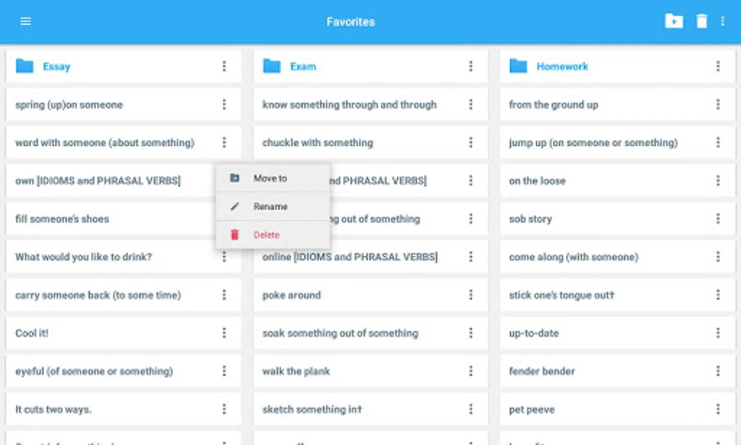 • ‘Favorites’ feature to create custom folders with lists of words from the extensive library