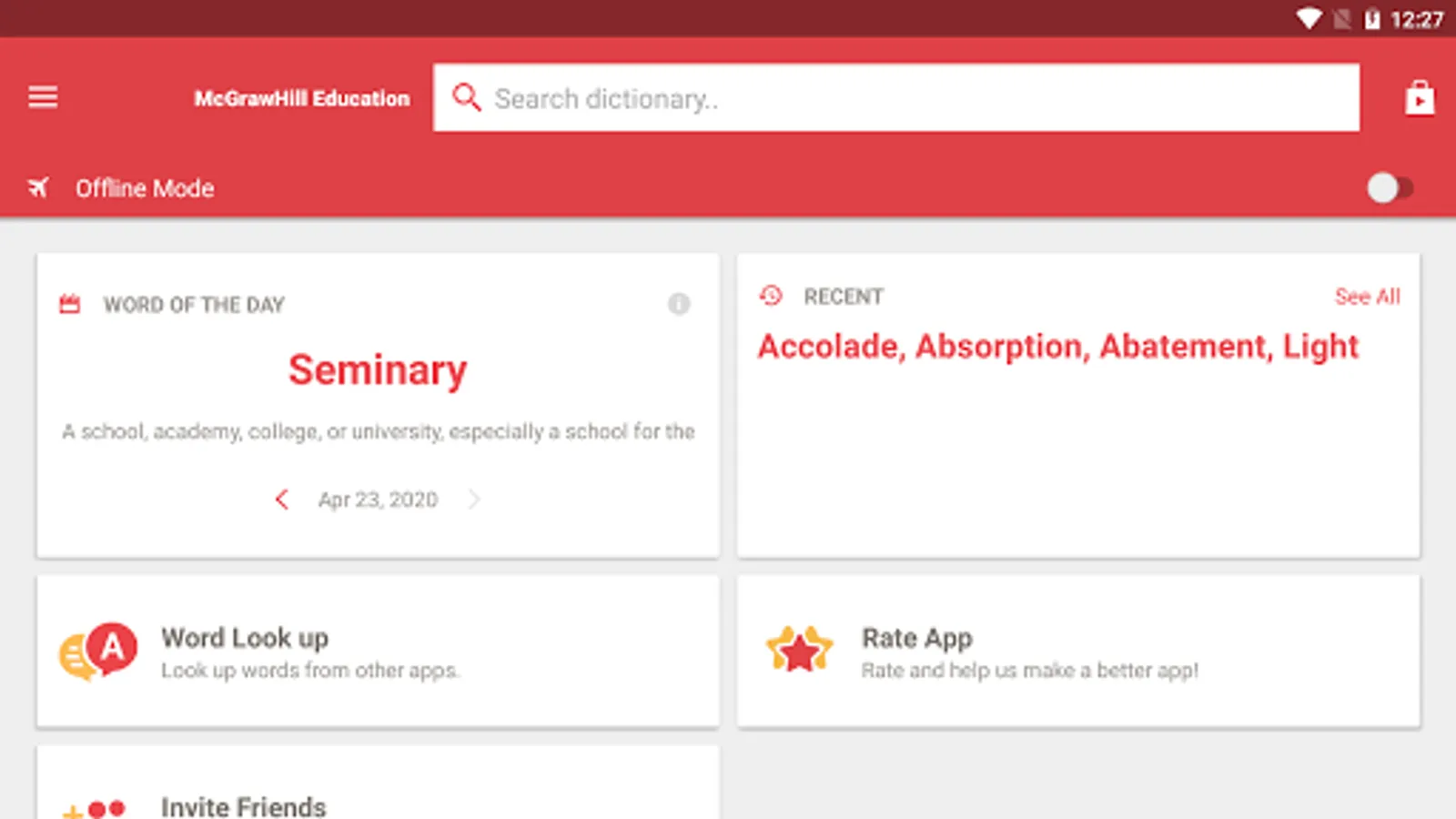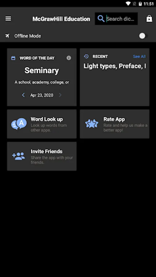 • Offline mode - look up words without an internet connection