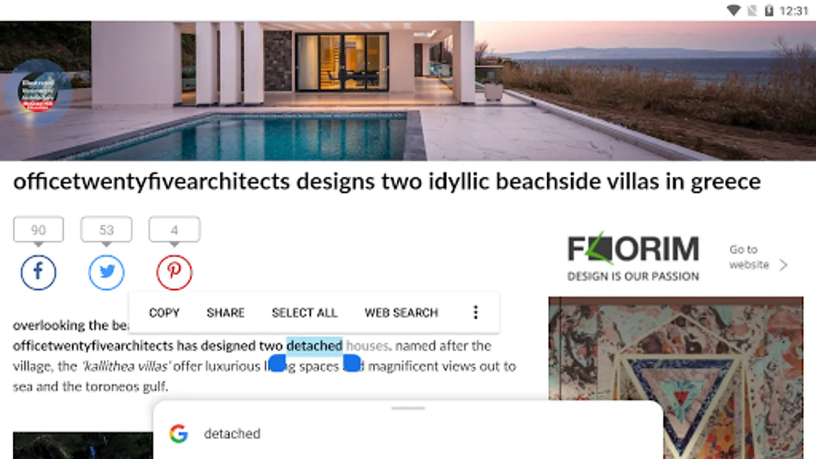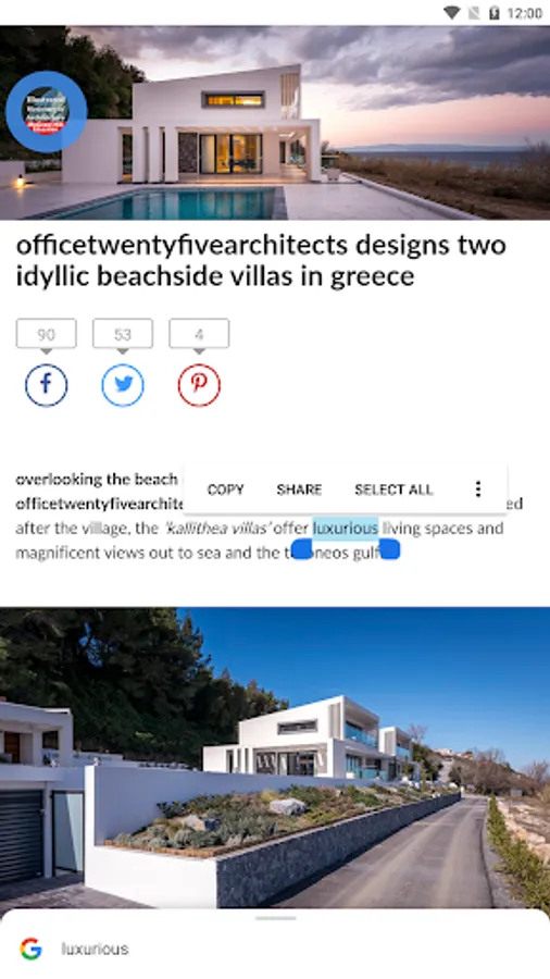 • Share word definitions via installed apps on your device